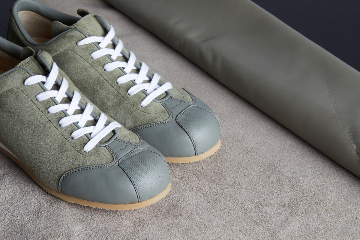 Gently lift dust from the nap using a suede brush. For white midsoles, we recommend “GLANZ LEISTUNG” by kaell (available through ilmia). To keep the leather in perfect shape, insert a shoe tree when not in use.